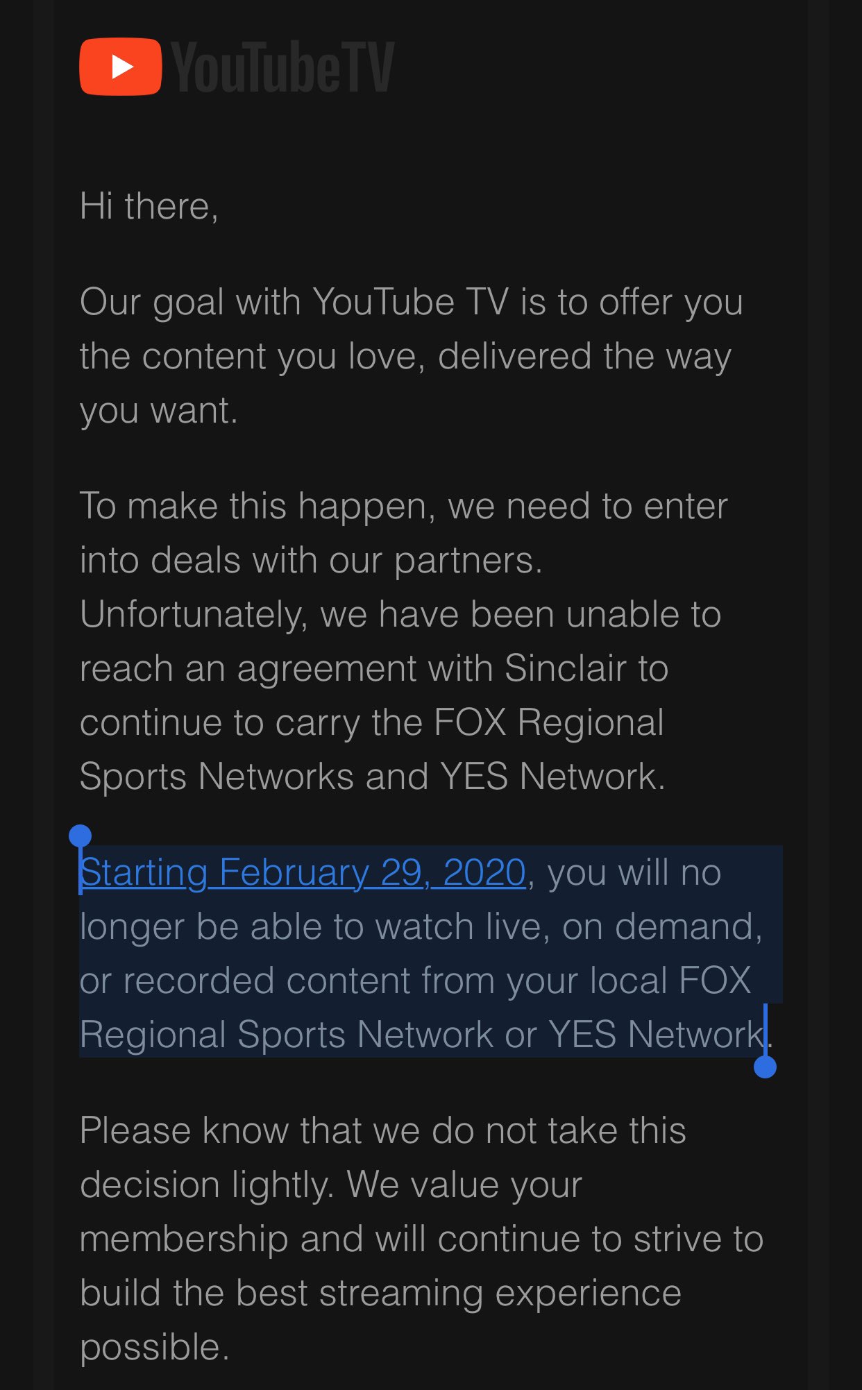 Well I Guess It S Official No More Sporting Games On Youtube Tv Guess I M Looking For A Way To Watch The Games R Sportingkc